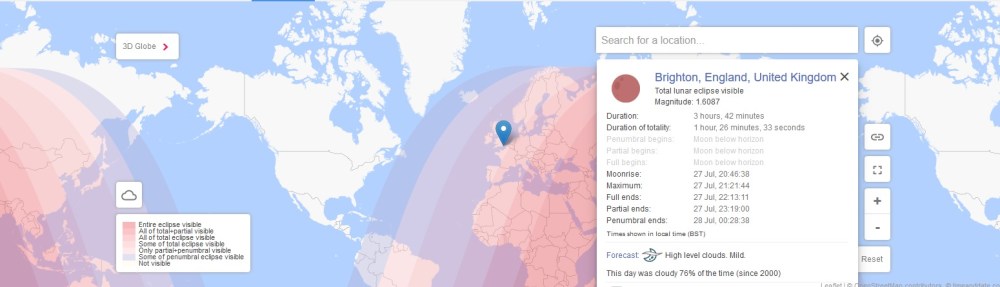 Eclipse Map — 27 July 2018 Total Lunar Eclipse